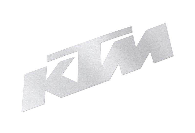 KTM sticker made from a special, reflective material. Shines as soon as it is illuminated by a headlight. 4 cm tall.